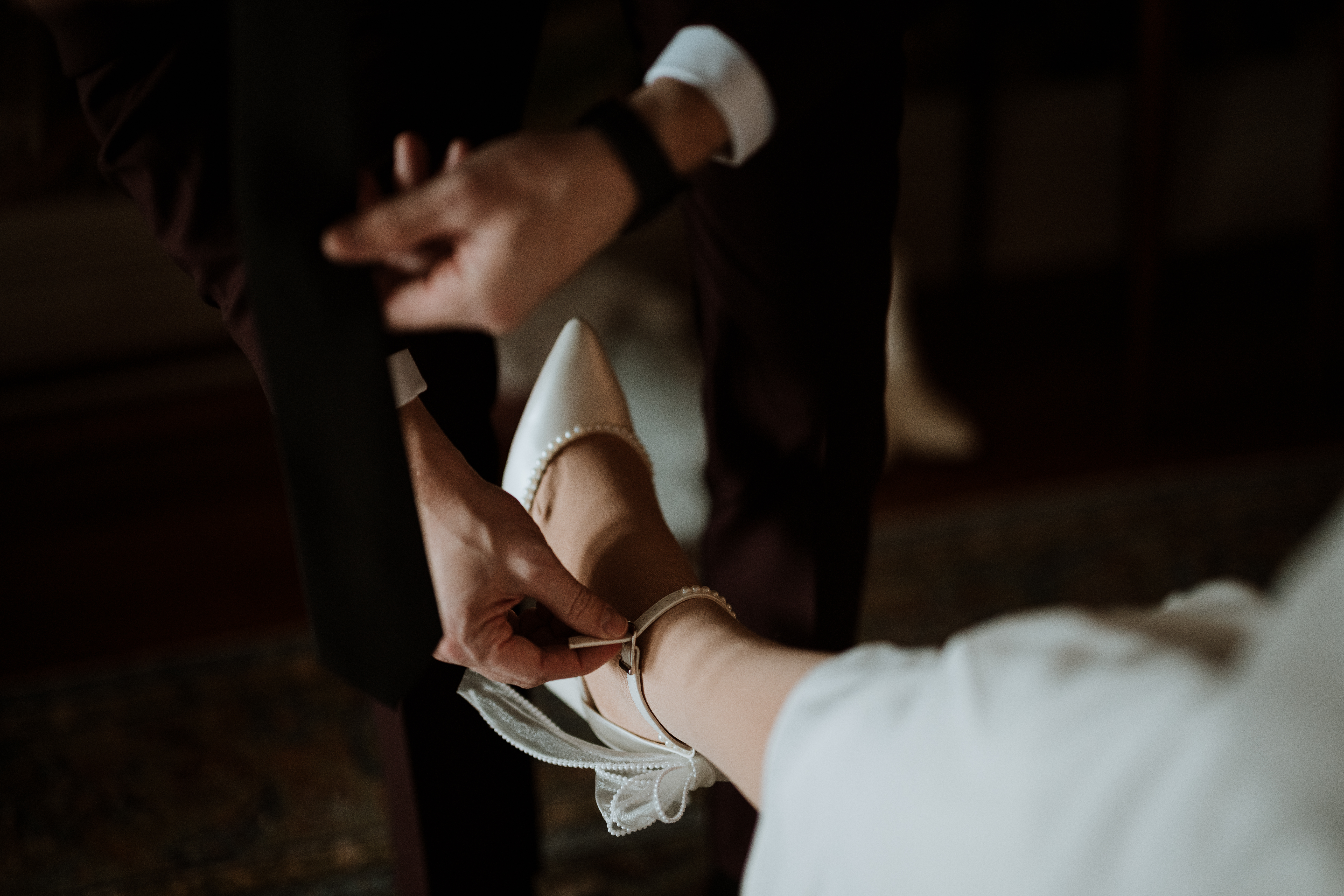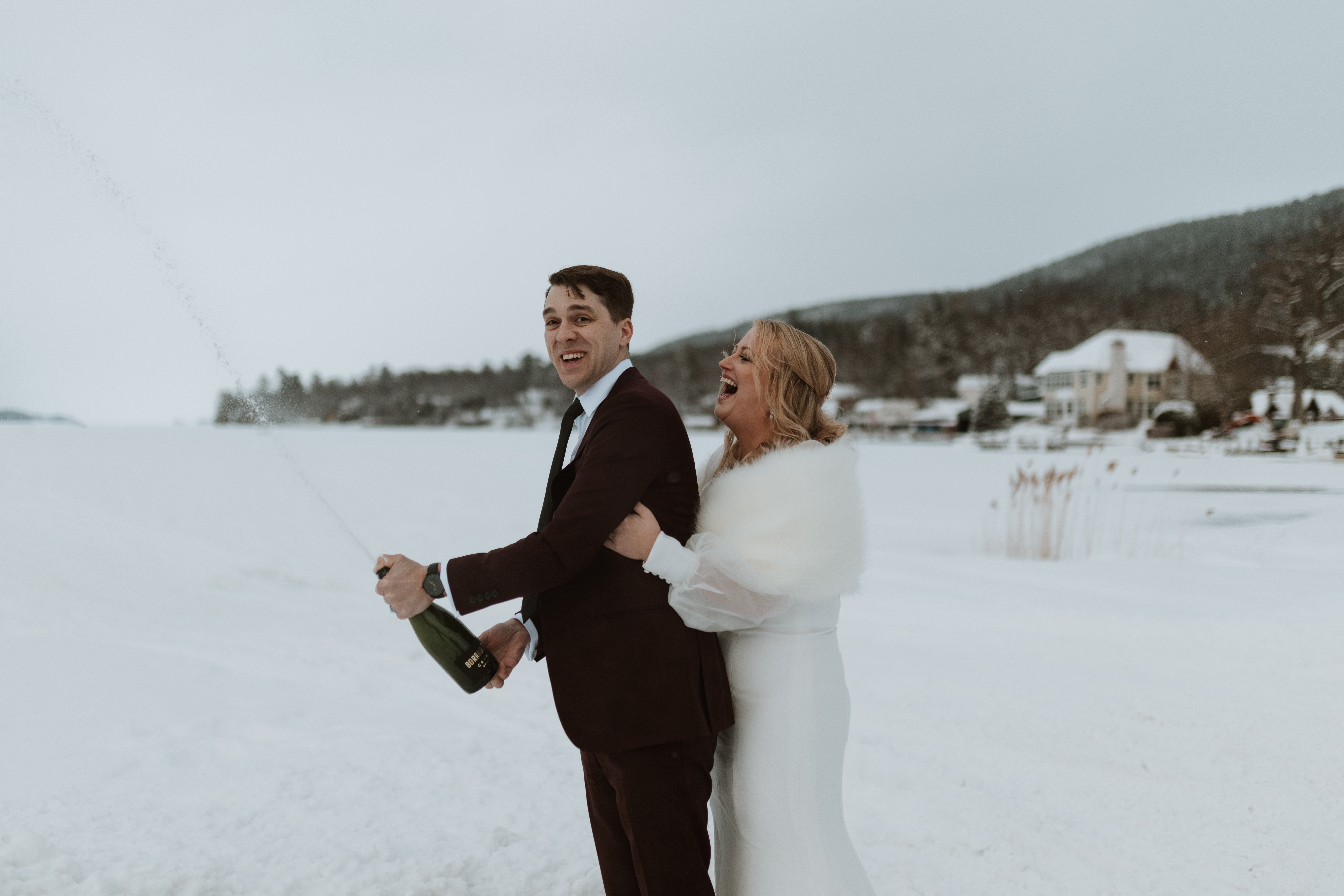 M + D knew from the start they wanted their wedding day to be low-key with just the two of them in one of their absolute favorite places: Lake George, NY. Taking the morning slow, they chose to get ready together after having a late breakfast. They read personalized vows written in eerily similar cards (despite the other not knowing the card chosen), exchanged adorable paper rings (their custom rings didn’t arrive in time but they found an awesome solution!), and ventured around Lake George in the middle of it’s quiet season.